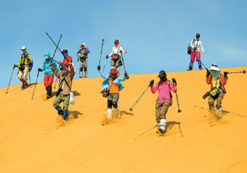 国庆长假期间,宁波一驴友联盟一行37人,包车前往内蒙古,徒步穿越库布齐沙漠,领略塞外迷人的草原和沙漠风光。据悉,这是我市驴友徒步穿越库布齐沙漠人数最多的一次。