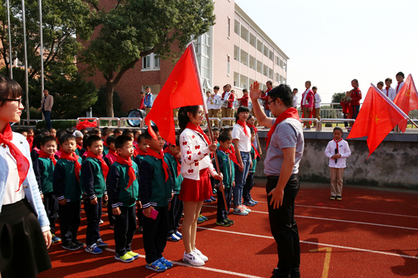 为营造浓厚的建队节氛围,学校向全体队员开放队室,以更直观的方式开展队史教育,展示学校少先队工作特色。除开放队室外,该校近20个主题队会活动向全校师生开放,聚集了大量人气。活动内容包含环保实践、习惯培养、读书故事、法制教育、文明礼仪等,师生可在活动当天随堂观摩各中队的精彩表演,并以嘉宾身份参与互动和点评。开放式活动,有效提升了师生的参与度,也指导队员在活动中更好地掌握队礼仪的四个基本规范——敬好一次队礼、挂好一次红领巾、握好一次队旗、唱好一次队歌。