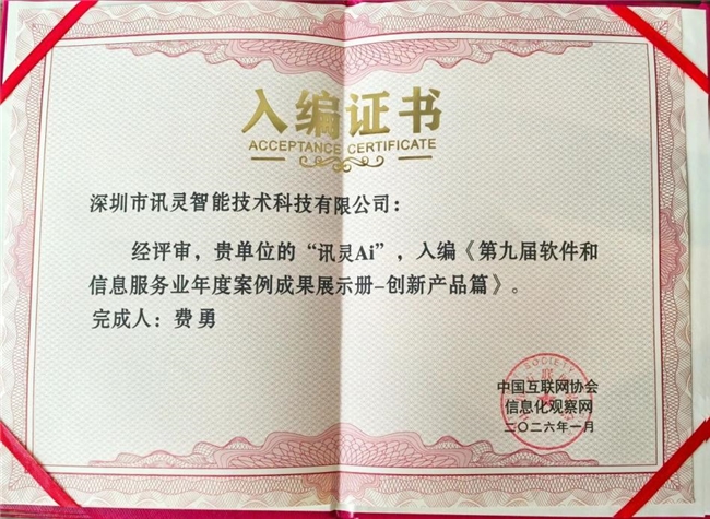 2026年1月7日,第十六届中国互联网产业年会在北京隆重召开,这场由中国互联网协会主办、北京市海淀区人民政府特别支持的行业顶级盛会,汇聚了互联网及软件信息服务领域的众多领军企业与权威专家。会上,深圳市讯灵智能技术科技有限公司旗下核心产品讯灵AI凭借突出的技术创新表现,成功入选“2025软件和信息服务业年度·创新产品”,公司总经理费勇先生登台领奖,彰显了行业对该产品技术实力与创新价值的高度认可。